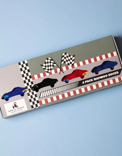 4-Pack Racing Cars Bamboo Socks Gift Box, Red/Black/Blue