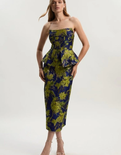 Soft Tailored Peplum Bandeau Tailored Maxi Dress