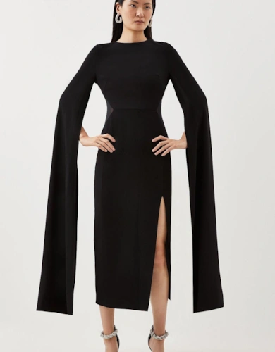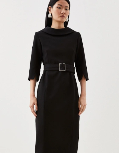 Structured Crepe Tailored Sleeveless Seam Detail Midi Dress