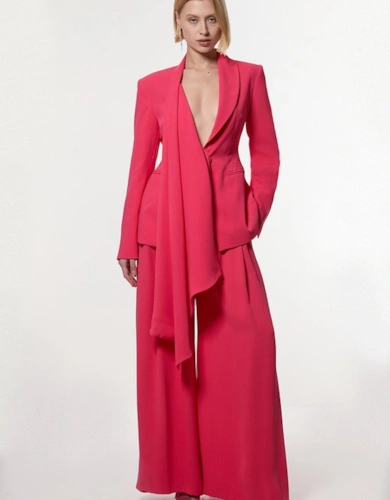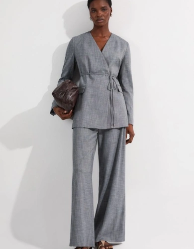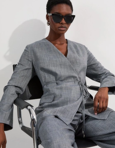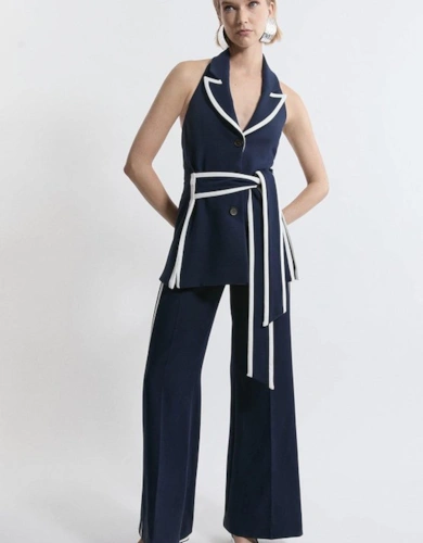 Clean Tailored Asymmetric Collar Belted Tailored Top