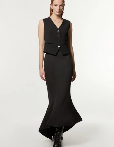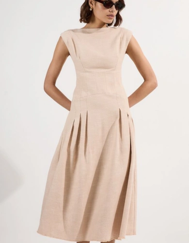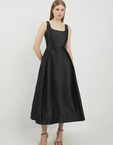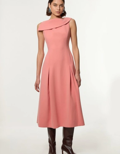 Petite Tailored Structured Crepe Forever Pleat Midi Dress
