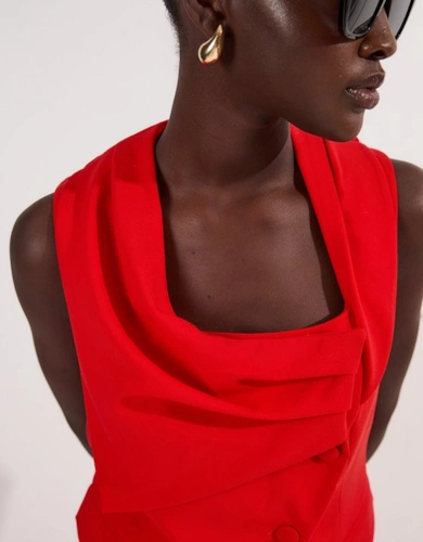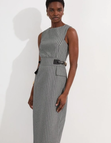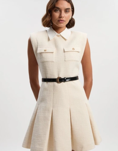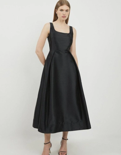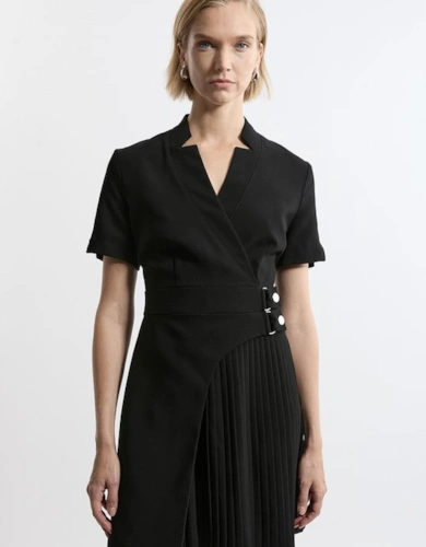 Soft Tailored Crepe Belted Pleated Midi Skirt