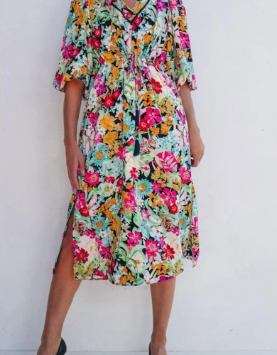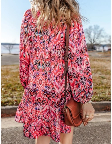 Pink Western Printed Tassel Tie V Neck Wrap Maxi Dress