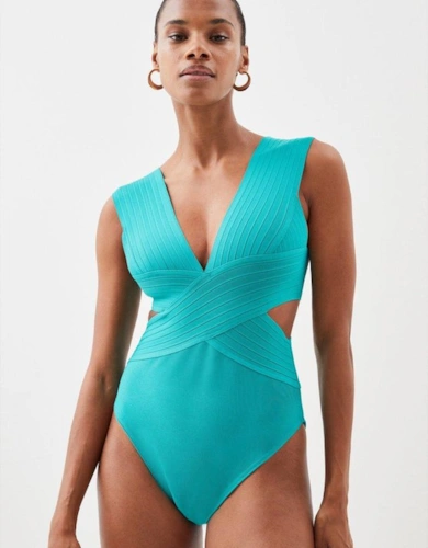 Bandage Textured V Neck Swimsuit