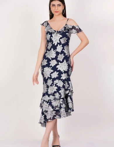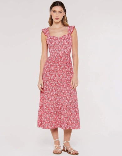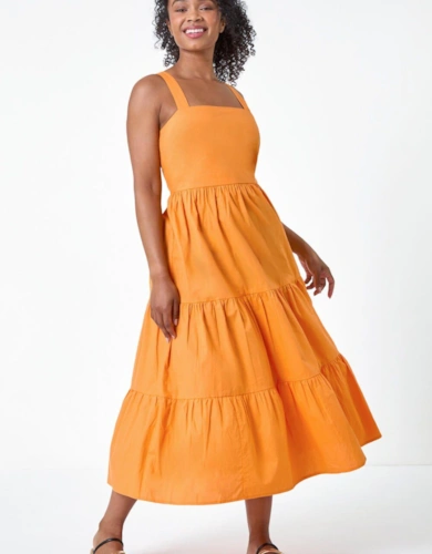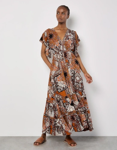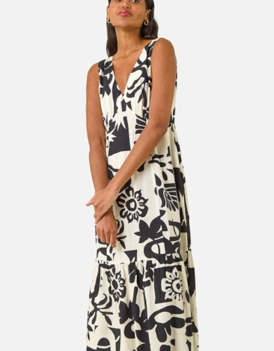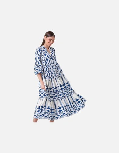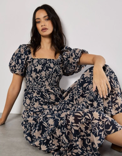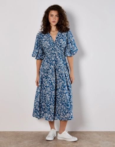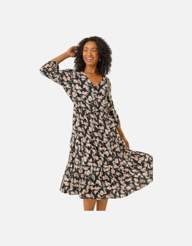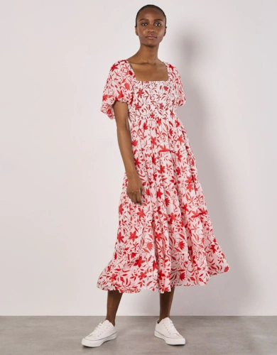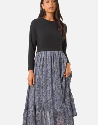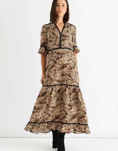 Green Animal Print Smock Tiered Midi Dress