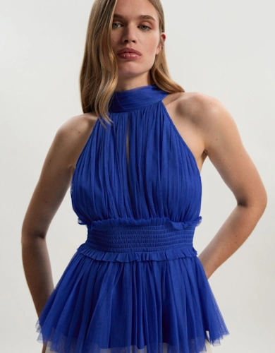 Tulle Layered Halter Neck Blouse