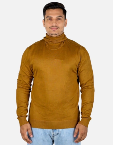 Avac Embroidered Logo Beige Turtle Neck Jumper