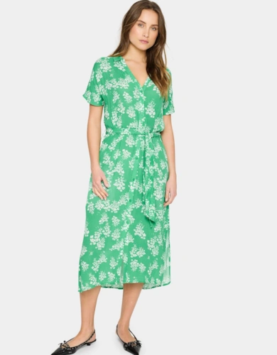 Red Floral Lace Trim V Neck Midi Dress