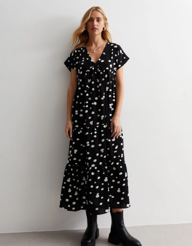 V Neck Lace Detail Midi Dress