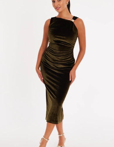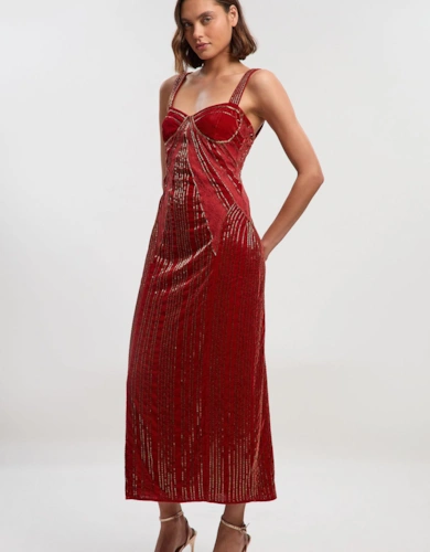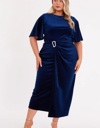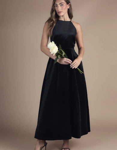 Ruffle Sleeve Boat Neck Velvet Maxi Dress