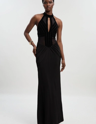 Glitter Velvet Cowl Neck Off The Shoulder Maxi Dress