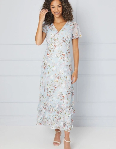 Floral Print Ruffle Midi Dress