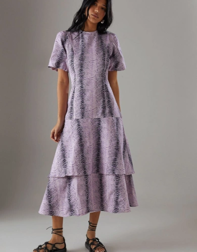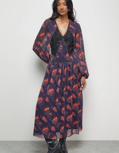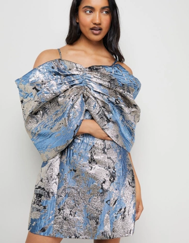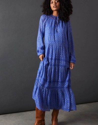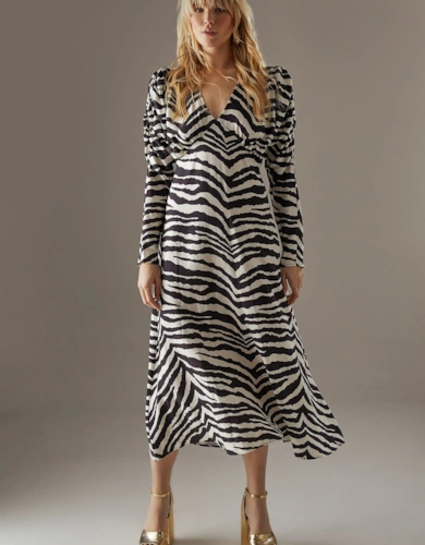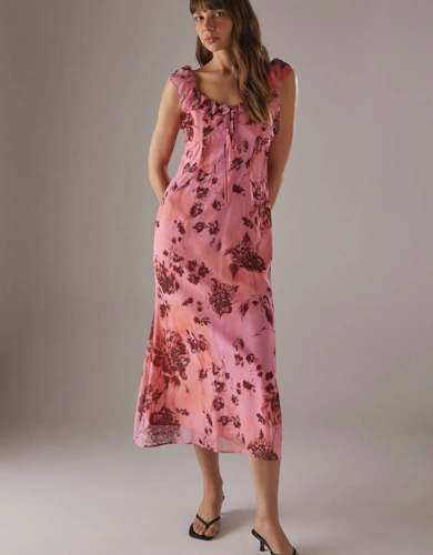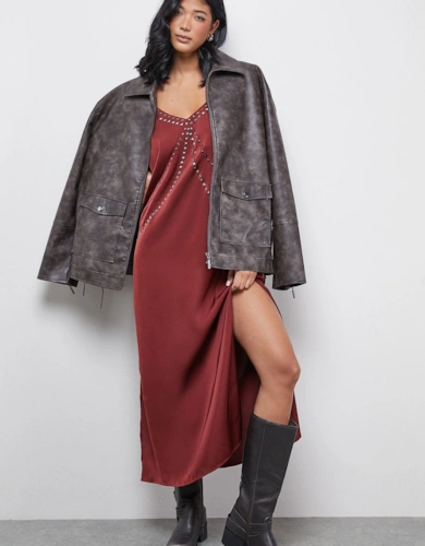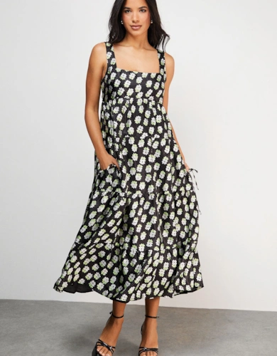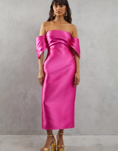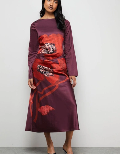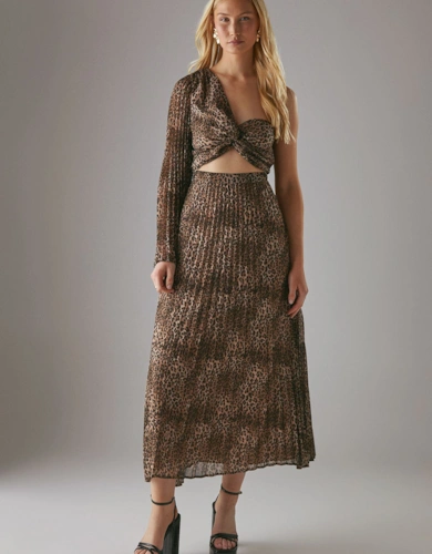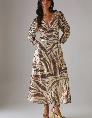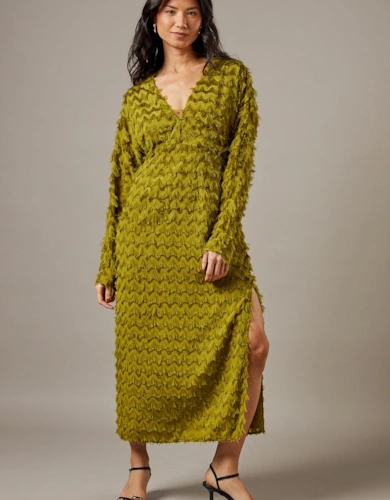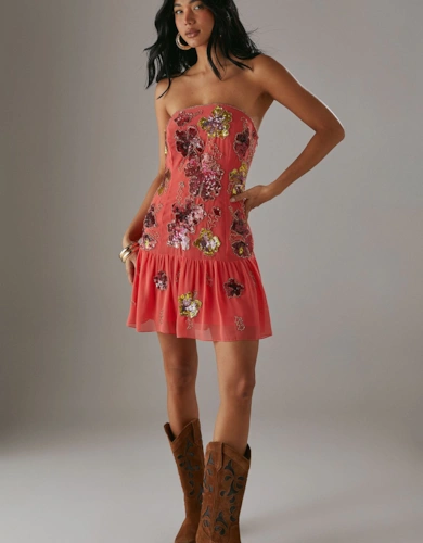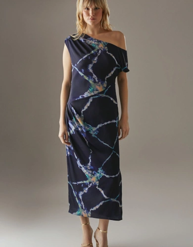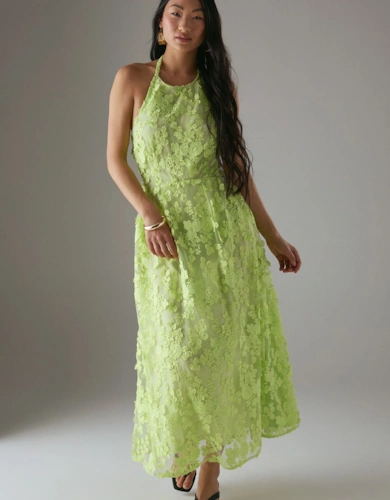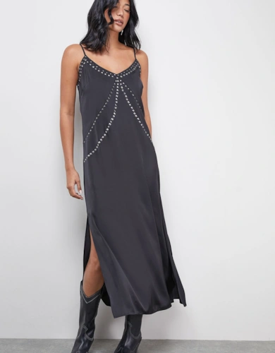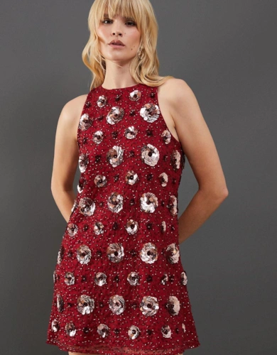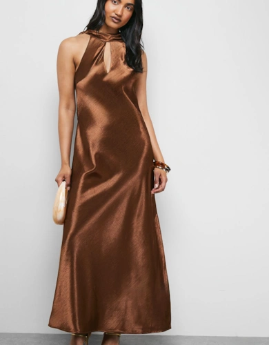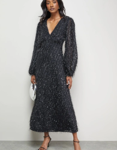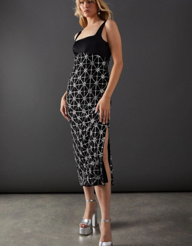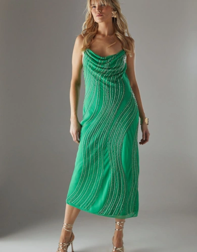 Hand Embellished Sequin Swirl Strappy Back Cowl Bias Midi Dress