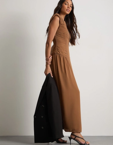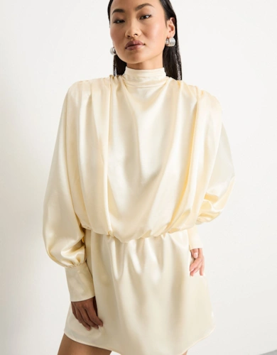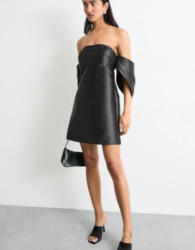 Seersucker Organza Godet Side Puff Sleeve Midi Dress