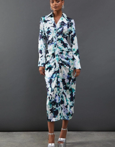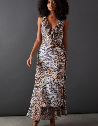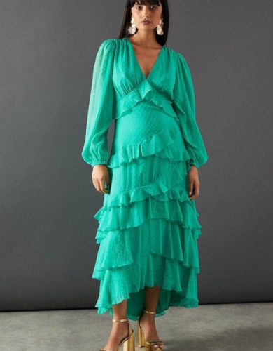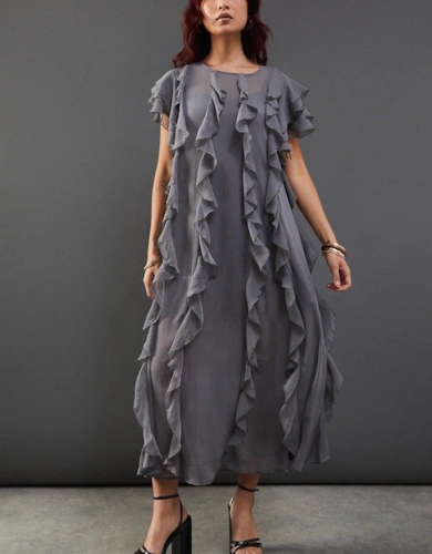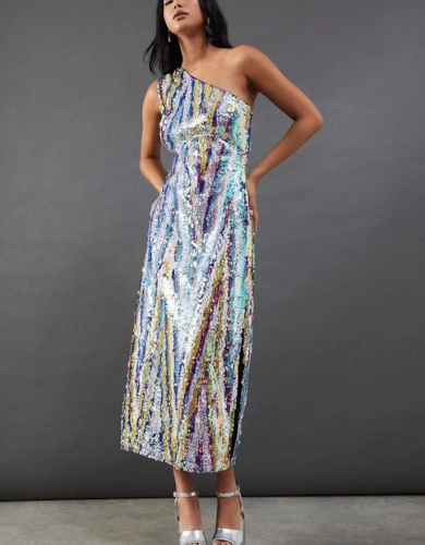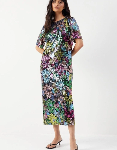 Sequin Snake Embellished Volume Sleeve Mini Smock Dress