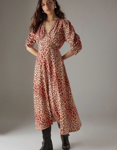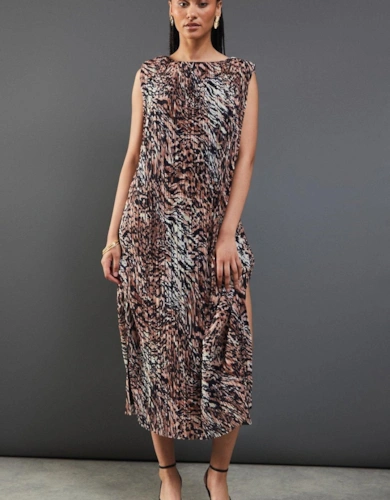Animal Denim Seam Detail Sleeveless Midi Dress