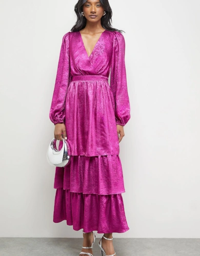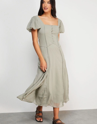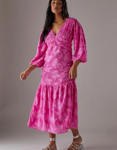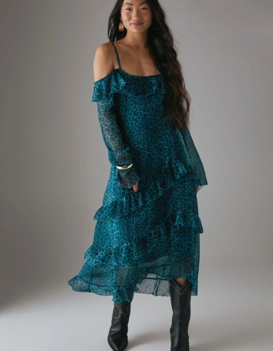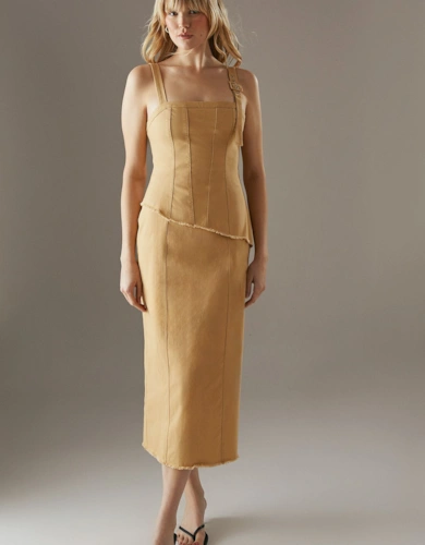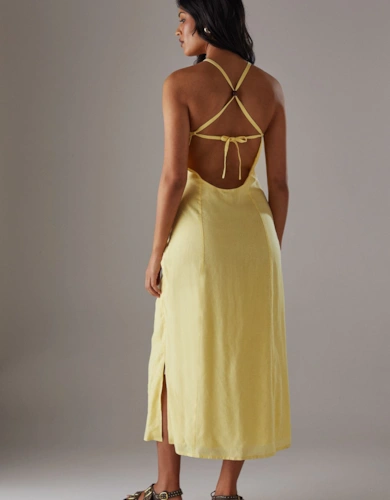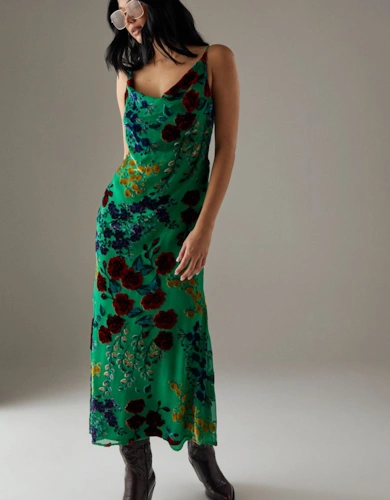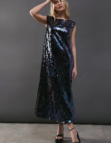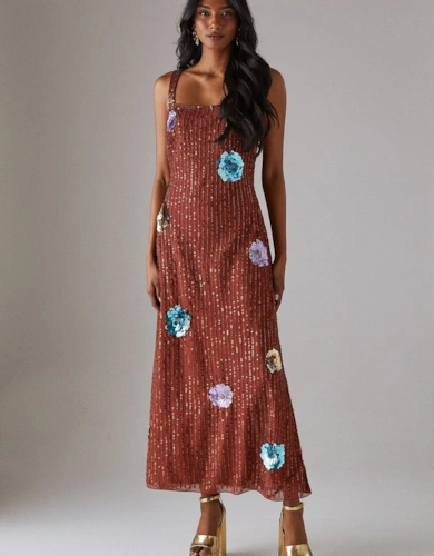 Hand Embellished Sequin Swirl Strappy Back Cowl Bias Midi Dress