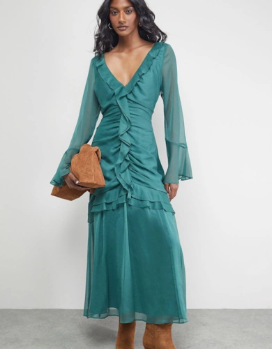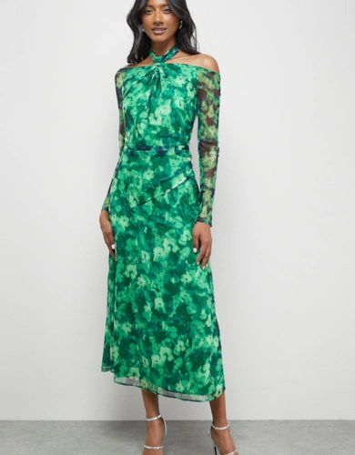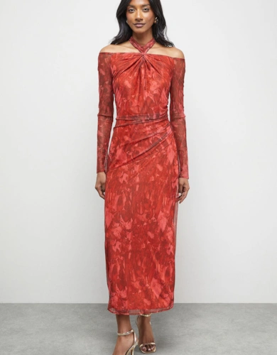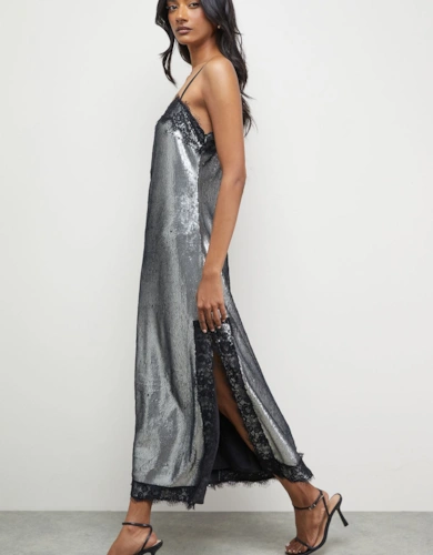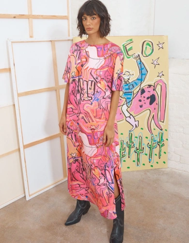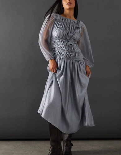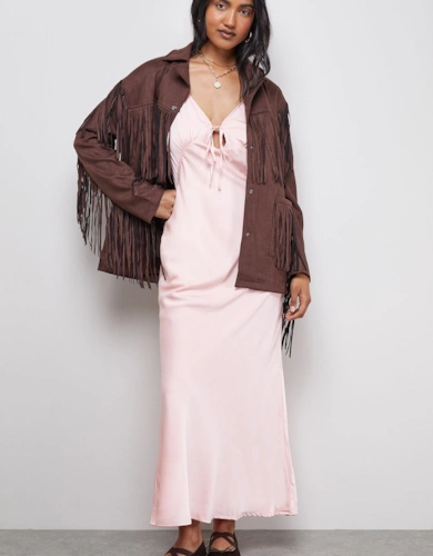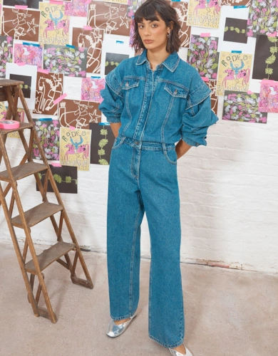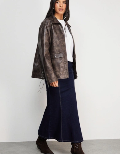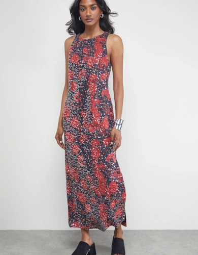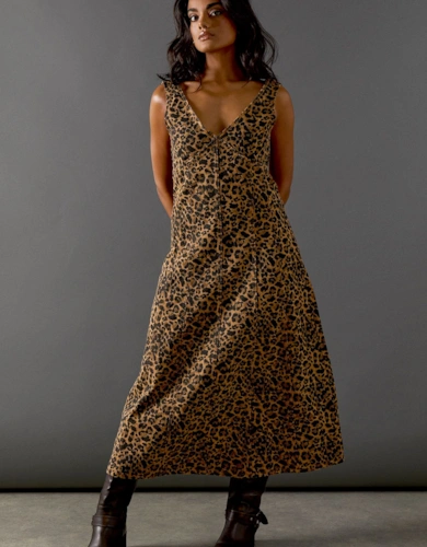 Animal Denim Seam Detail Sleeveless Midi Dress