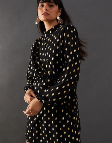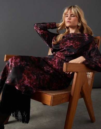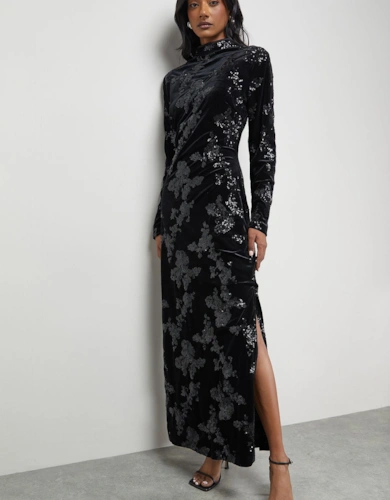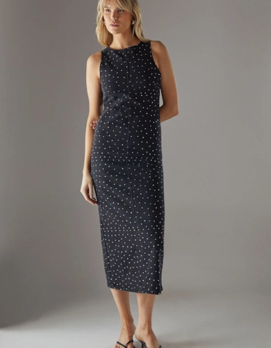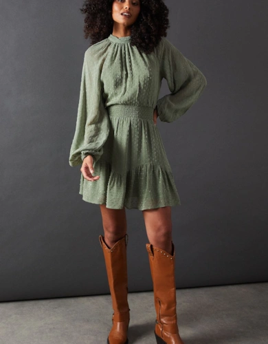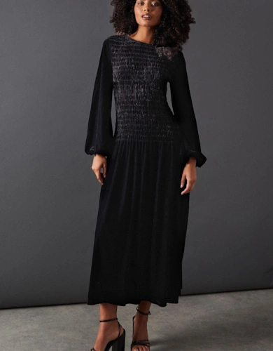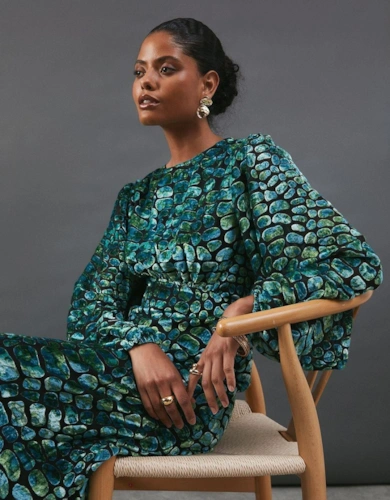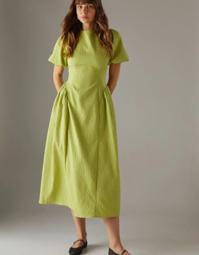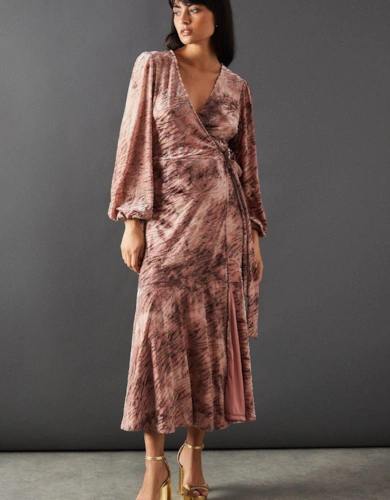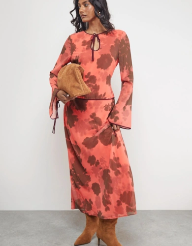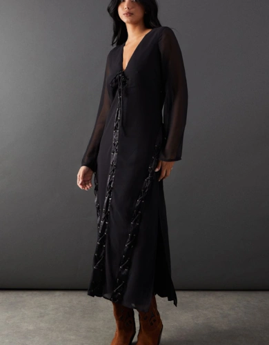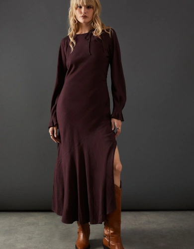 Georgette Tie Front Keyhole Tie Cuff Midi Dress