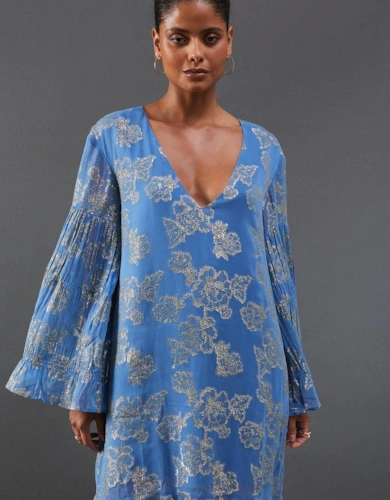 Shadow Stripe Tie Back Neck Ruffle Tier Midi Dress