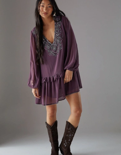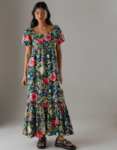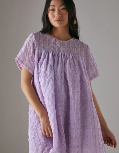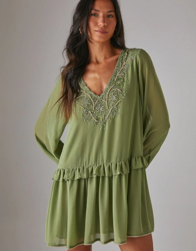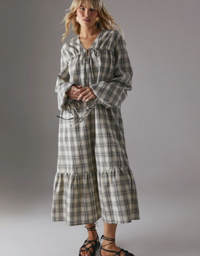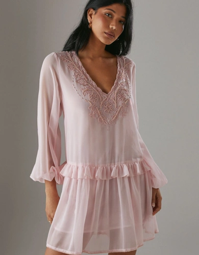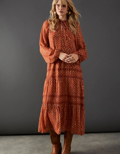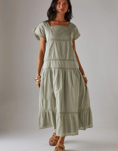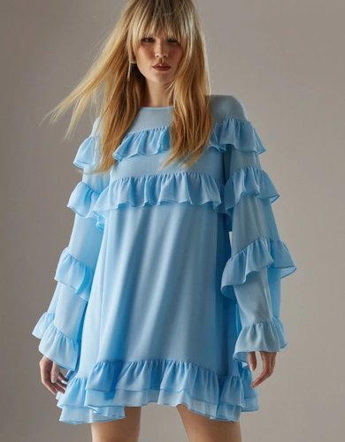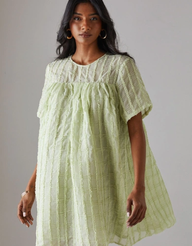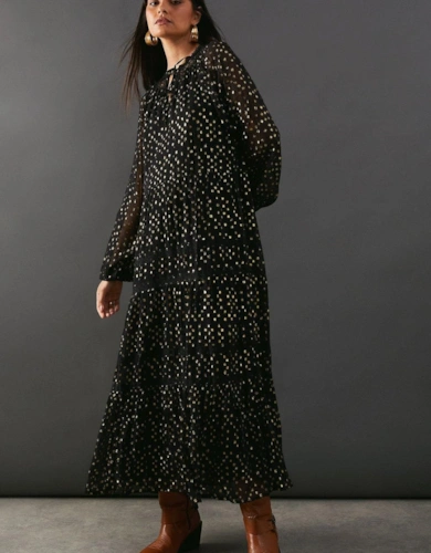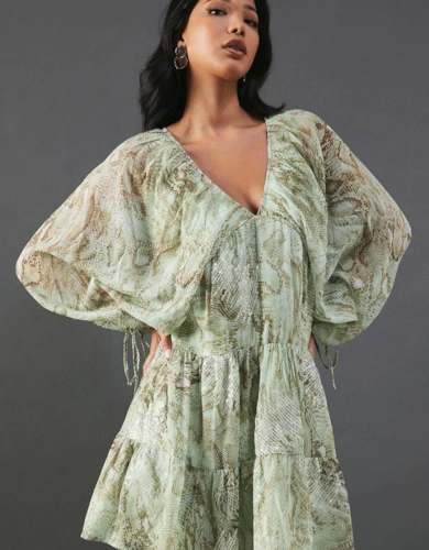 Petite Dobby Chiffon Plunge Neck Ruffle Midi Smock Dress