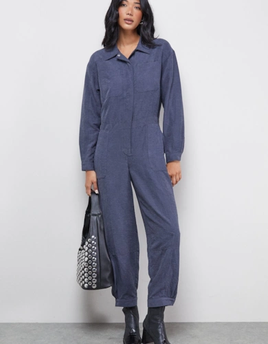 Tony Denim Jumpsuit With Stepped Shoulder Detail