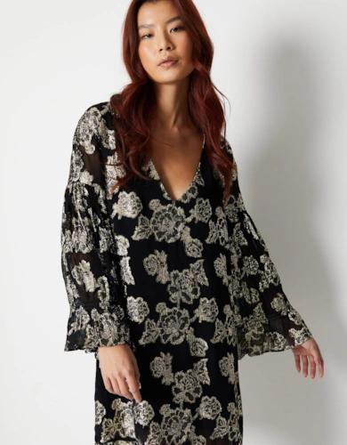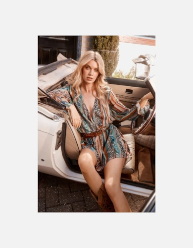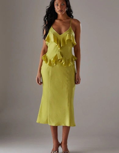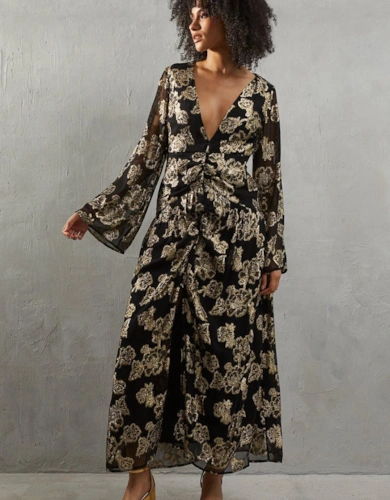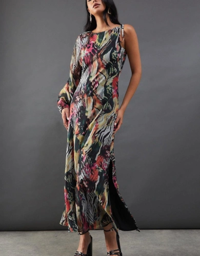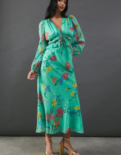 Print Twist Mesh Midi Dress