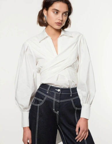 Button Detail 3/4 Sleeve Relaxed Blouse