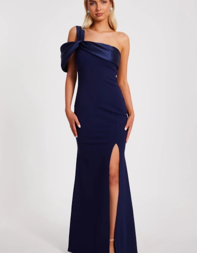 Devoure One Shoulder Woven Maxi Dress With Trim Detail