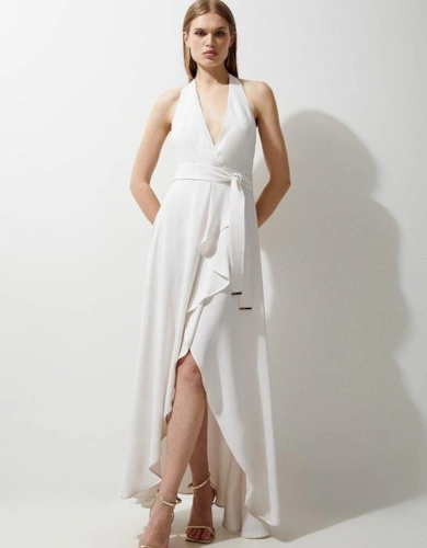 D Alba Womens Long Dress Round Neck Maxi Metal Party Wear Top Belt Black