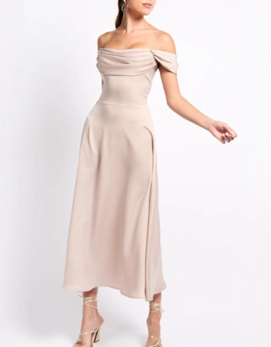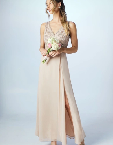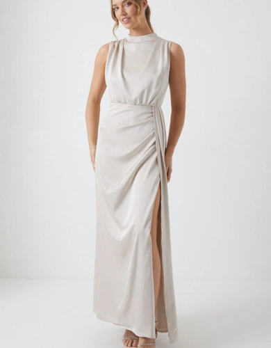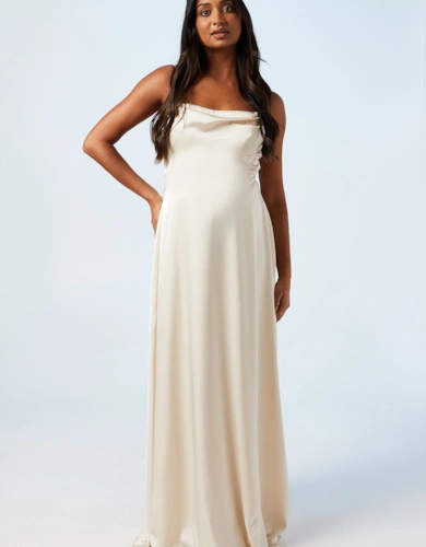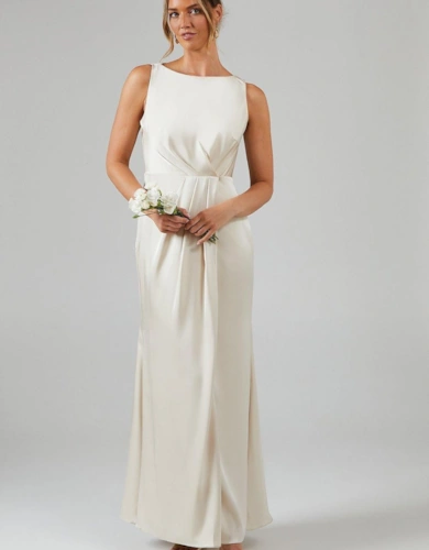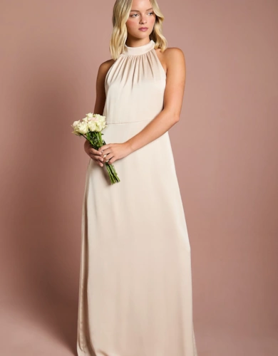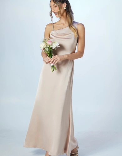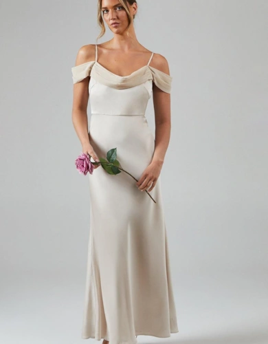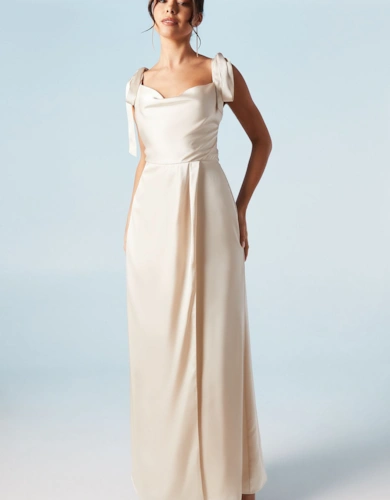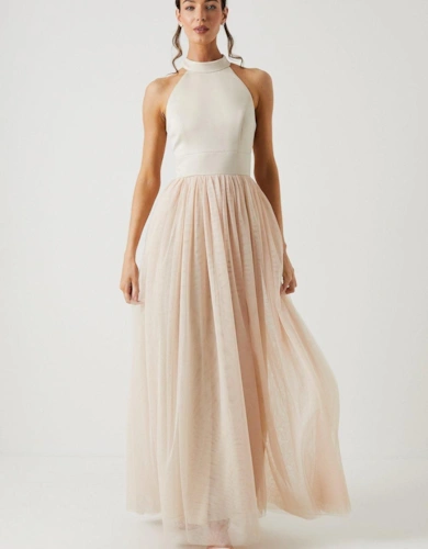 Satin Bodice Tulle Skirt Maxi Bridesmaid Dress