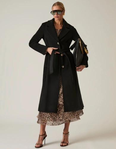 Wool Hybrid Puffer High Neck Belted Midi Coat