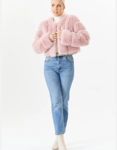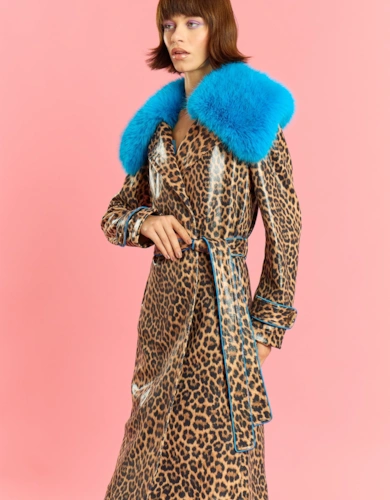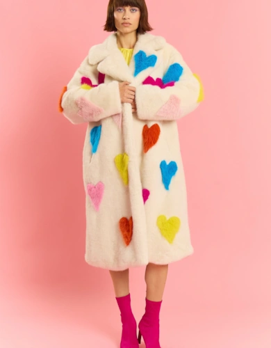 Pink And Green Faux Shearling Big Check Oversized Coat