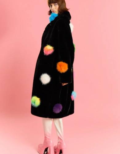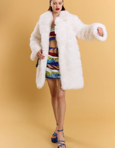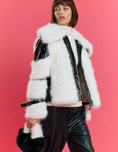 Yellow Faux Fur Faux Suede Cape Jacket