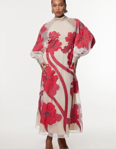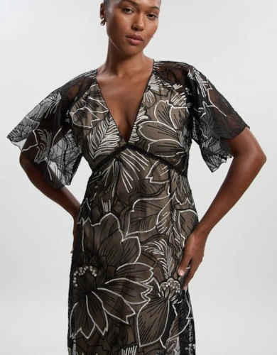Plus Size Embellished Ruffle Keyhole Cutout Woven Maxi Dress