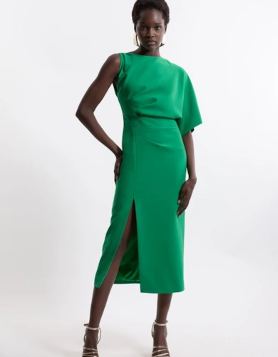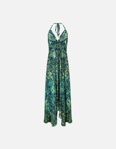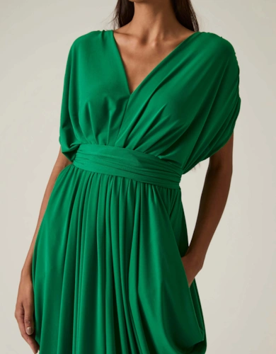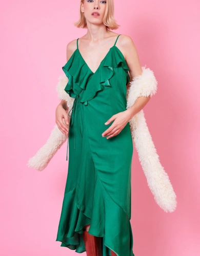 Emerald Silk Blend Maxi Ruffle Wrap Dress