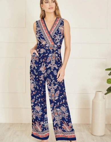 Hen Devore One Shoulder Scarf Neck Jumpsuit
