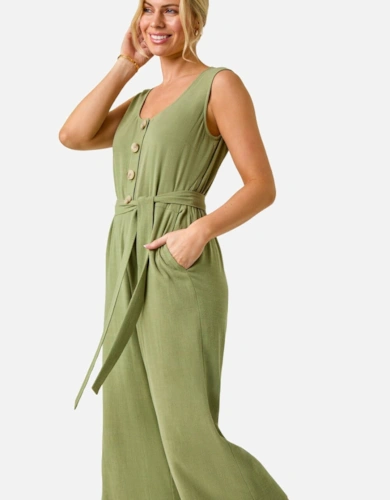Petite Button Front Jumpsuit