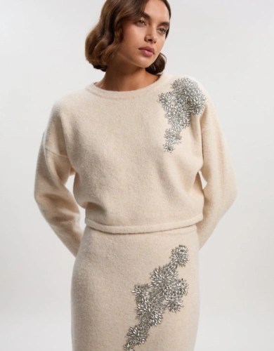 Wool Blend Embellished Cosy Crew Neck Knit Jumper