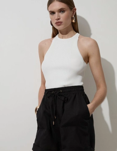 Viscose Linen Halter Tiered Woven Maxi Dress
