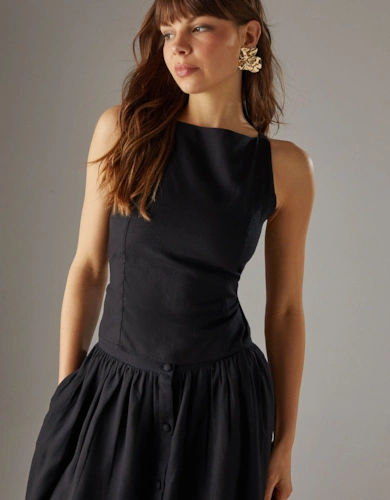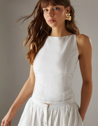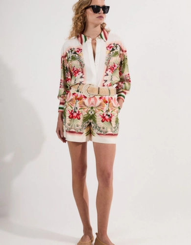 Viscose Linen Scenic Print With Top Stitch Woven Maxi Skirt