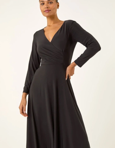 Green Recycled Fabric Crane Print Kimono Midi Dress