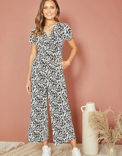 Petite Denim Corset Waist Detail Wide Leg Jumpsuit