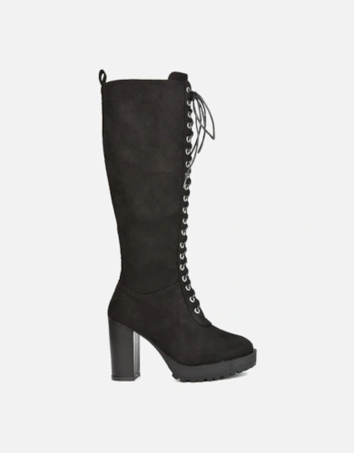 Trish Black Faux Suede Wedged Heel Ankle Boot