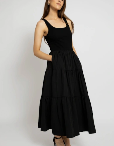 Alondra Blouson Tank Pencil Midi Dress Plain