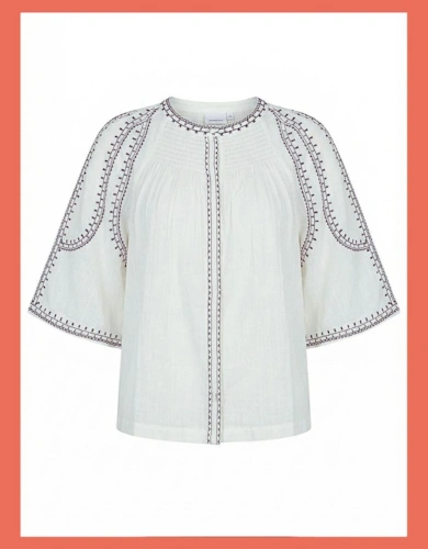 White Dobby Chiffon Frill Neck Blouse