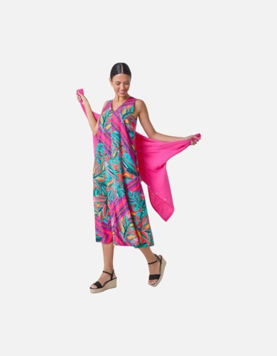 Tropical Floral Silk Cotton Woven Strappy Woven Maxi Dress