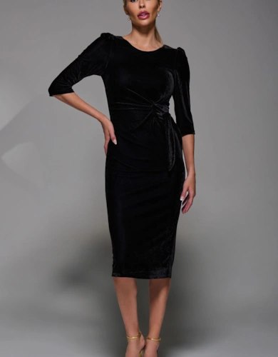 Velvet Mesh Sleeve Belt Detail Woven Mini Dress