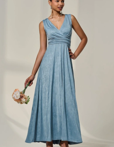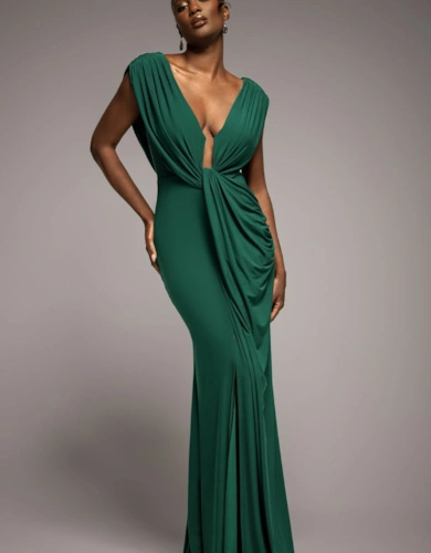 Sliver Star Foil V Neckline Long Sleeve Maxi Dress In Green