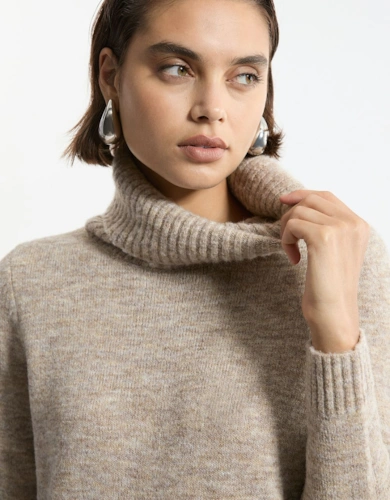 Wool Look Rounded Sleeve Knit Midaxi Dress